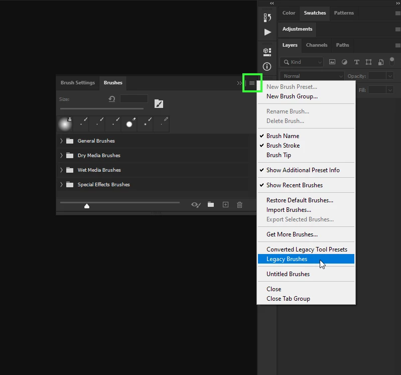 En travaillant sur Photoshop CC je ne retrouve plus les pinceaux predefinies des anciennes versions de Photoshop.