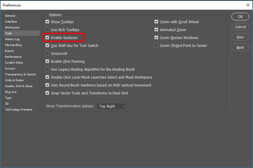 Hello, I just bought a brand new 17 inch Alienware laptop. I am unable to use the "Two-Finger Pan and Zoom" feature in Photoshop. This feature should allow me to zoom in and out of a artboard, but instead just scrolls from side to side. I do not believe this is a driver issue because I have tried the same gesture in chrome and it works. Also, I have looked over several support pages about this and they mention turning on the gesture feature in "tools" (which are already selected) and to turn on GPU acceleration (which is also selected). I have the current version of Photoshop CC and all drivers are up to date. I am not using a PC with a touch screen (which comes up in several forums).