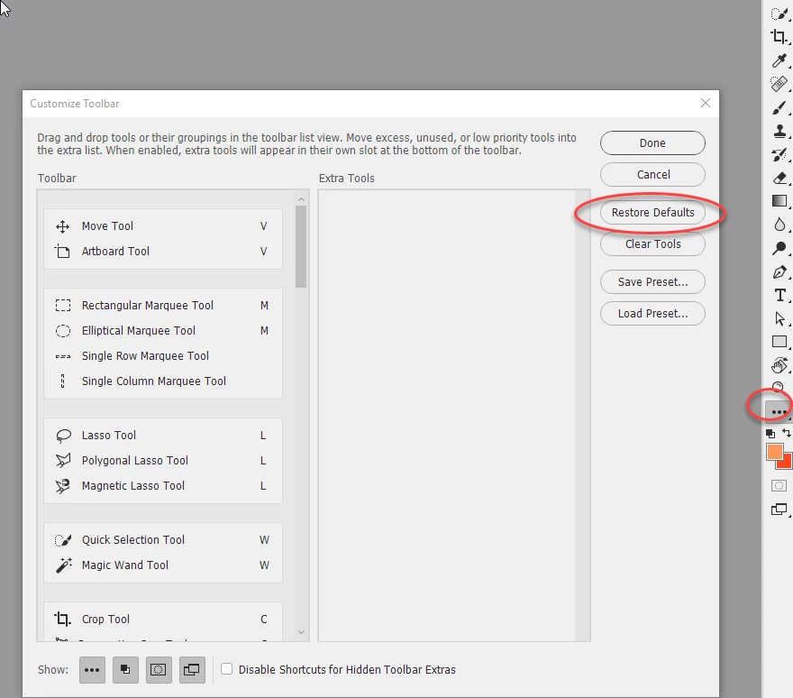 If the answer is no , and you are using the current version of Photoshop go to the three dots and choose edit toolbar. Then choose restore defaults