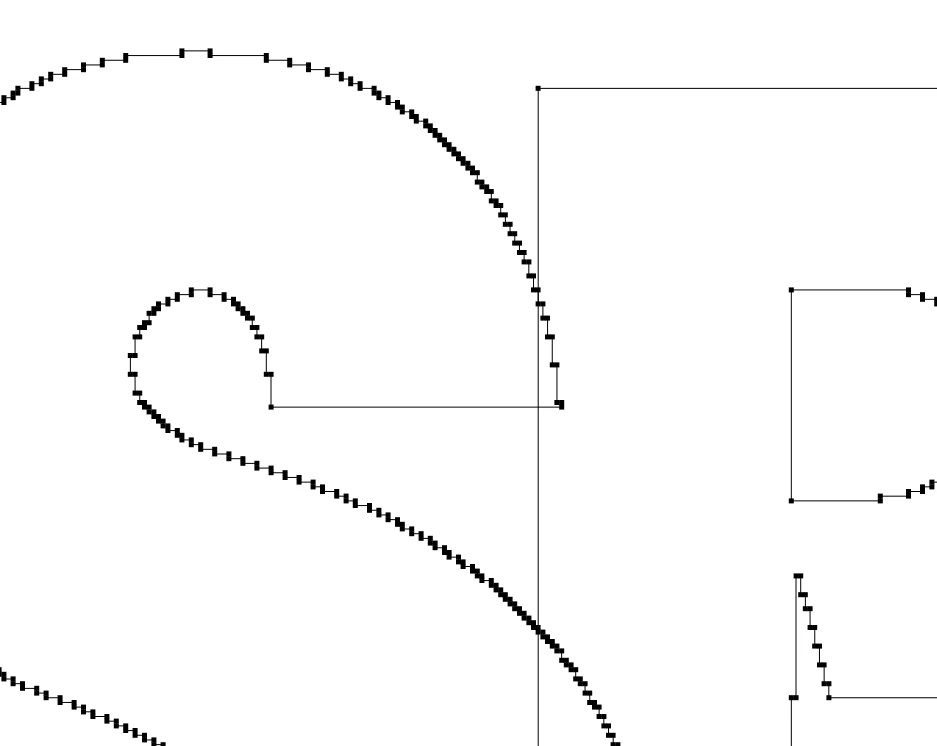 Here's your problem: whoever made the font  was a hack. Here's a work path made from some text (@800%)