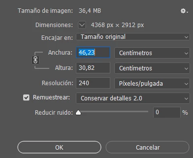Mis opciones de tamaño de impresión, en aluminio, que manejo son de 80 o 100 cms de ancho. El tamaño en la captura es de 46,23 cms.