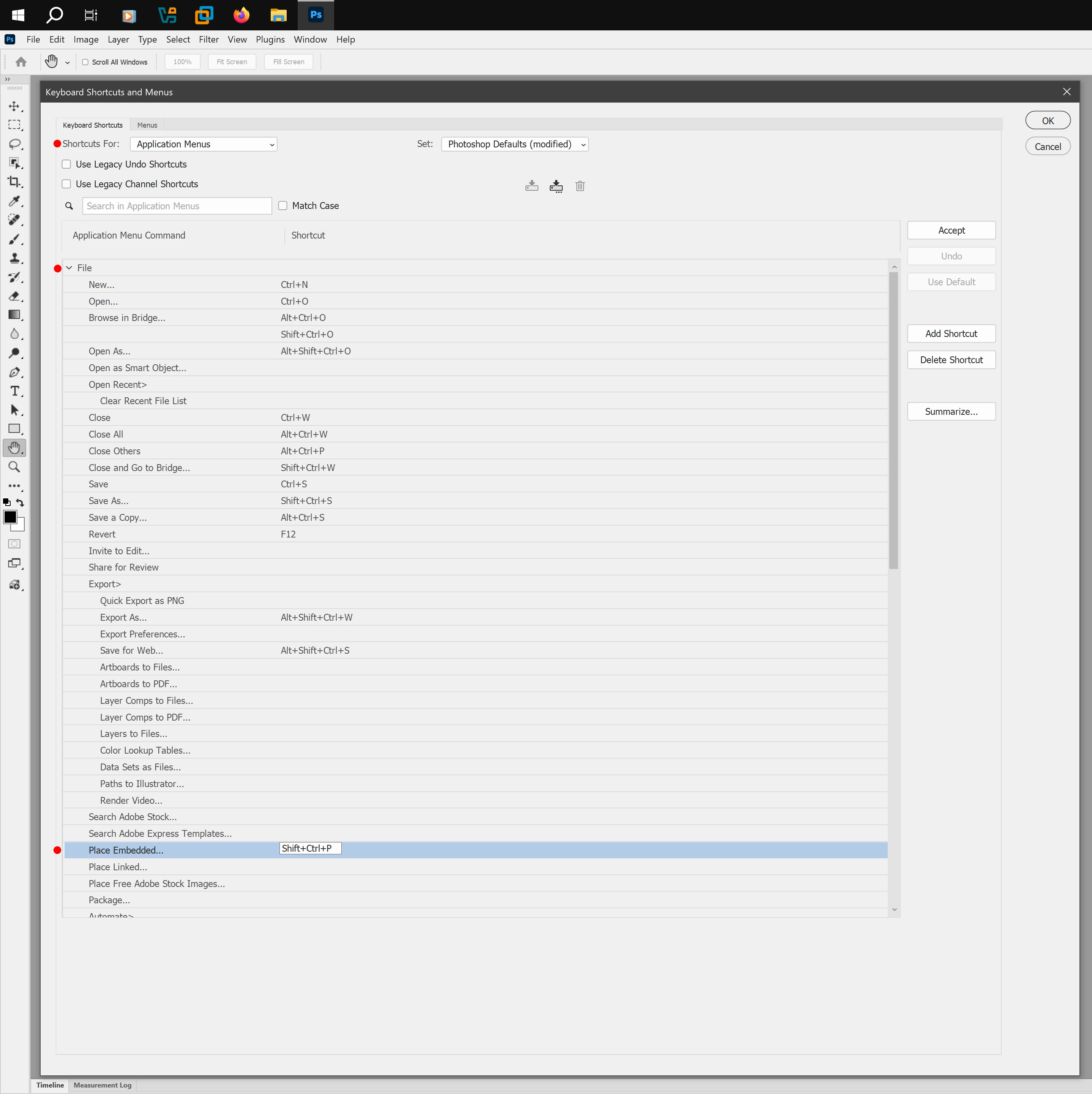 Click on Place Embedded, type your Shift+Ctrl+P, click Accept then Ok