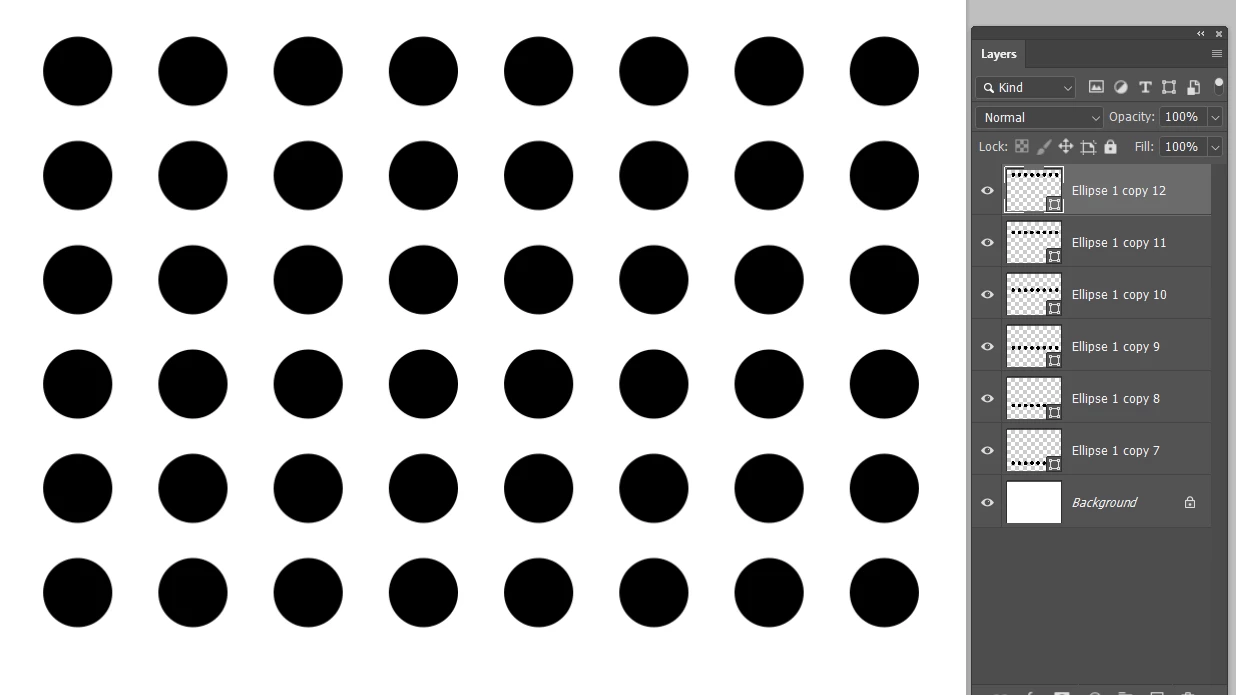 I want to copy a shape object 28 times onto a single layer. The canvas size is 11 x 8.5 inches, and the grid is 7 wide by 4 tall. I need to do the same thing in a mask.