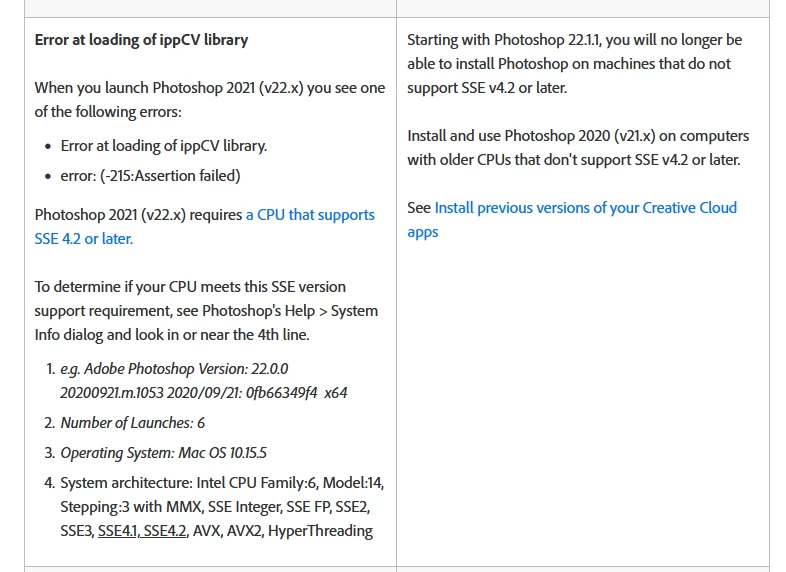 https://helpx.adobe.com/photoshop/kb/known-issues.html#ErroratloadingofippCVlibrary