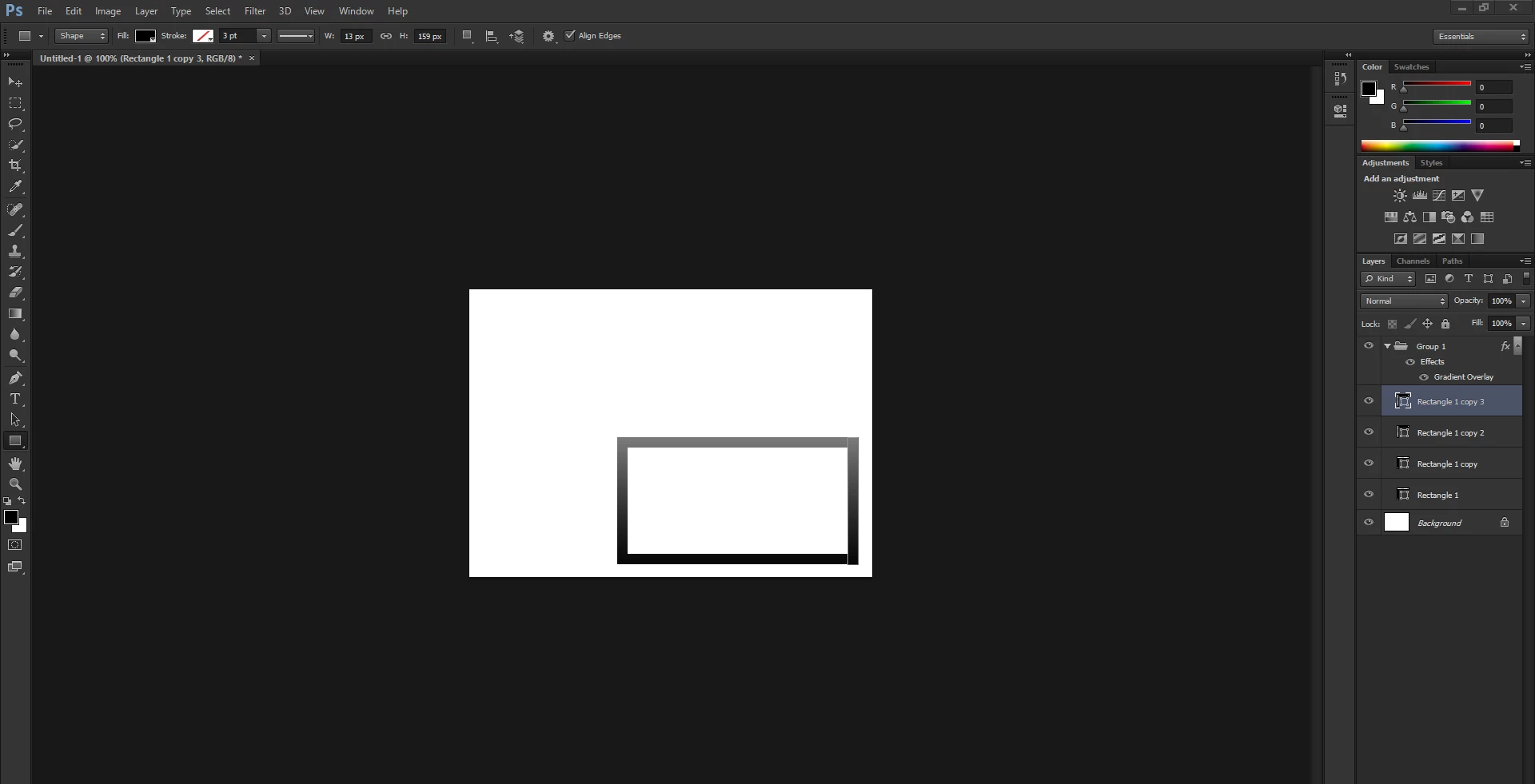 I am having trouble with the graidents in my projects. When ever I construct outlined rectangles with the shape tool and then dragging them into a group, the gradient color changes everytime I move it. When ever I move the group down, closer to the bottom. the gradient gets darker, like the whole canvas has a gradient on it. In my many years of using photoshop, I never had this problem. It's like if I turned it into a smart object and was able to move the gradient in the shape, but I didnt have to convert it into a smart object, it just normally stuck to the shape, and yes, I did align the group gradient. Im not sure what the problem is, and whenever I look it up, nothing helps. Im using Photoshop CS6 by the way.