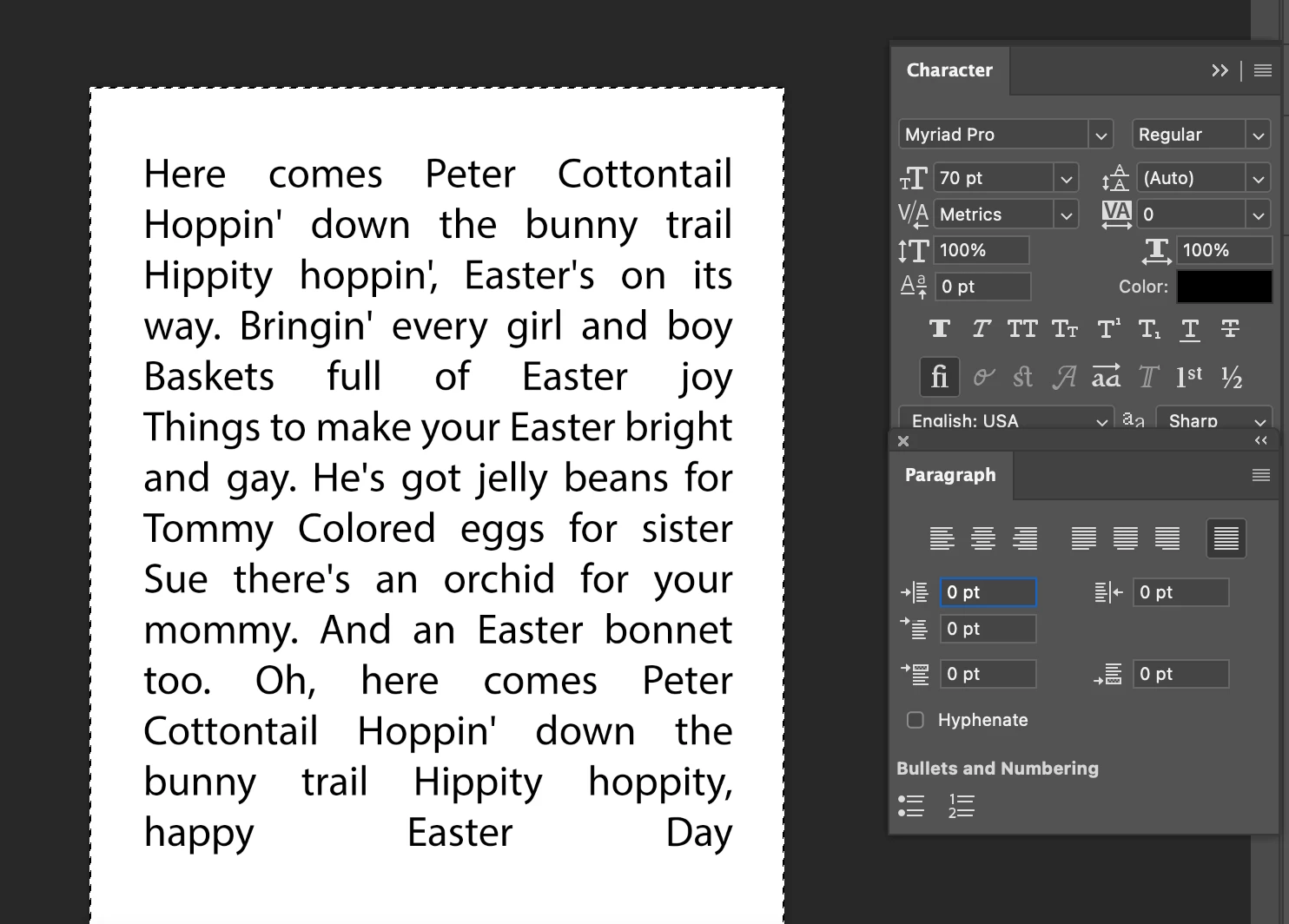 I am beating my brains out trying to figure out how to justify all text into one neat block. Ideally I'd like to draw a text box, paste or type my text, then have it expand to fill the box and auto adjust font size and letter spacing to fit the box perfectly. I have attached an example of what I am trying to achieve. I am currently trying: draw box -> paste text -> adjust font size - > justify all ... but it ends up with the last line being half filled. I want it to expand to fit the whole box. Thanks in advance!