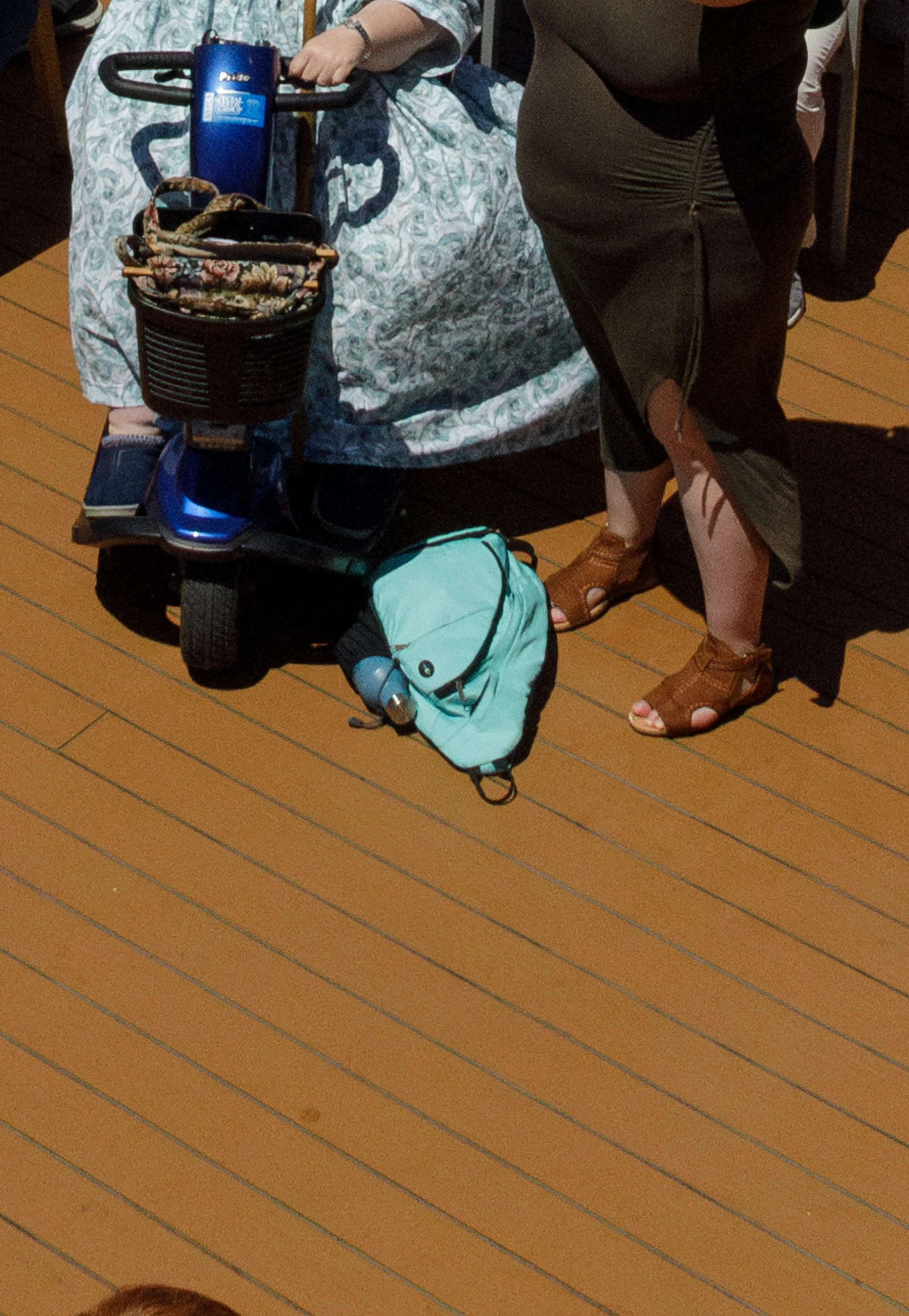 Or would it be better to just use this layer from Photo B to get the blue backback and scooter wheel, and use tools like Patch and Clone Stamp on several layers with masks for the floor? (That sounds very tedious and error prone!)