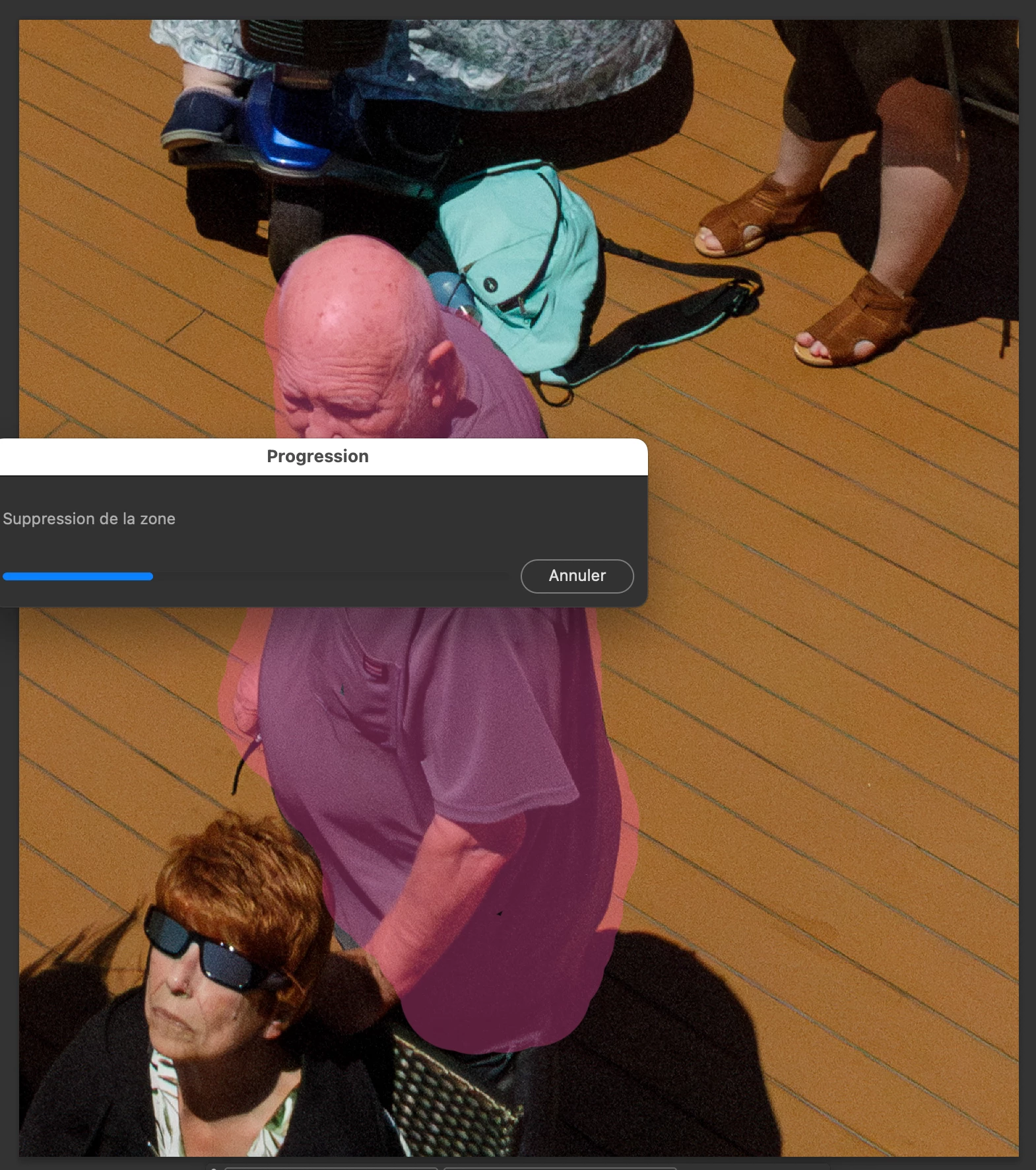 What procedure would you recommend for removing the man in this photo, which I'll call "Photo A"?