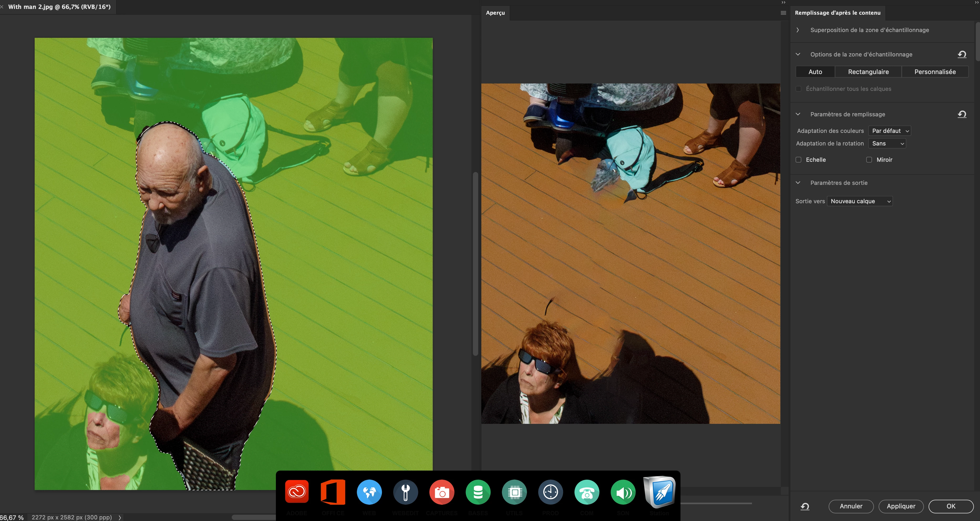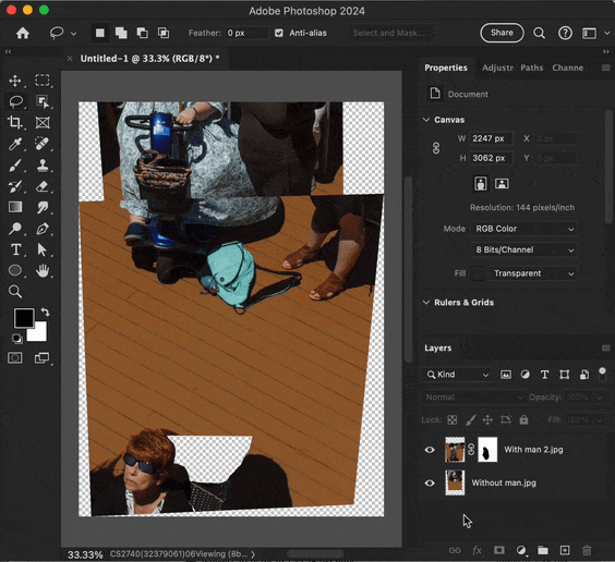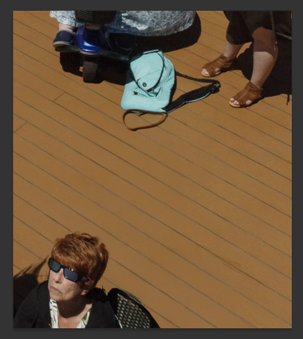 8. Fill in holes and clean up using any combination of tools that works, such as Generative Fill, Content-Aware Fill, Healing Brush tool, Clone Stamp tool, etc.