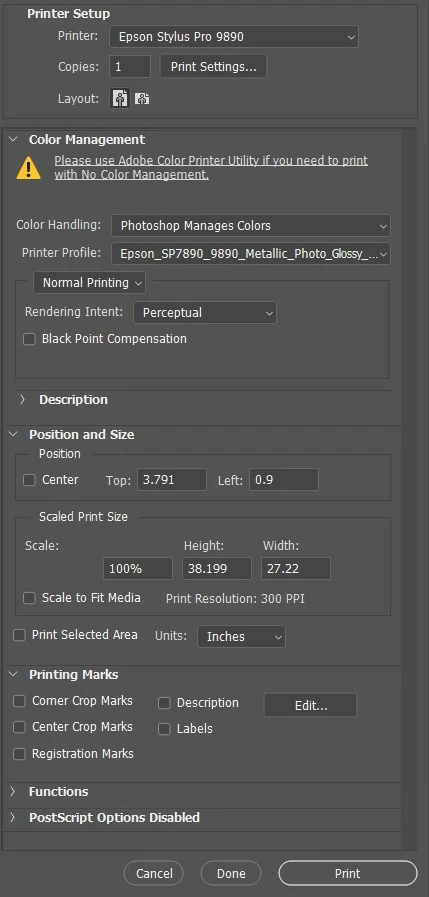 Alex GubskiParticipantForum|Forum|1 year agoJune 26, 2024QuestionPlease use Adobe Color Printer UtilityForum|Forum|1 year agoJune 26, 20242 replies620 viewsHi everyone, I since recently start seeing strange message "Please use Adobe Color Printer Utility if you need to print with No Color Management" while I have set Photoshop to manage colors. What may be causing this?Windows