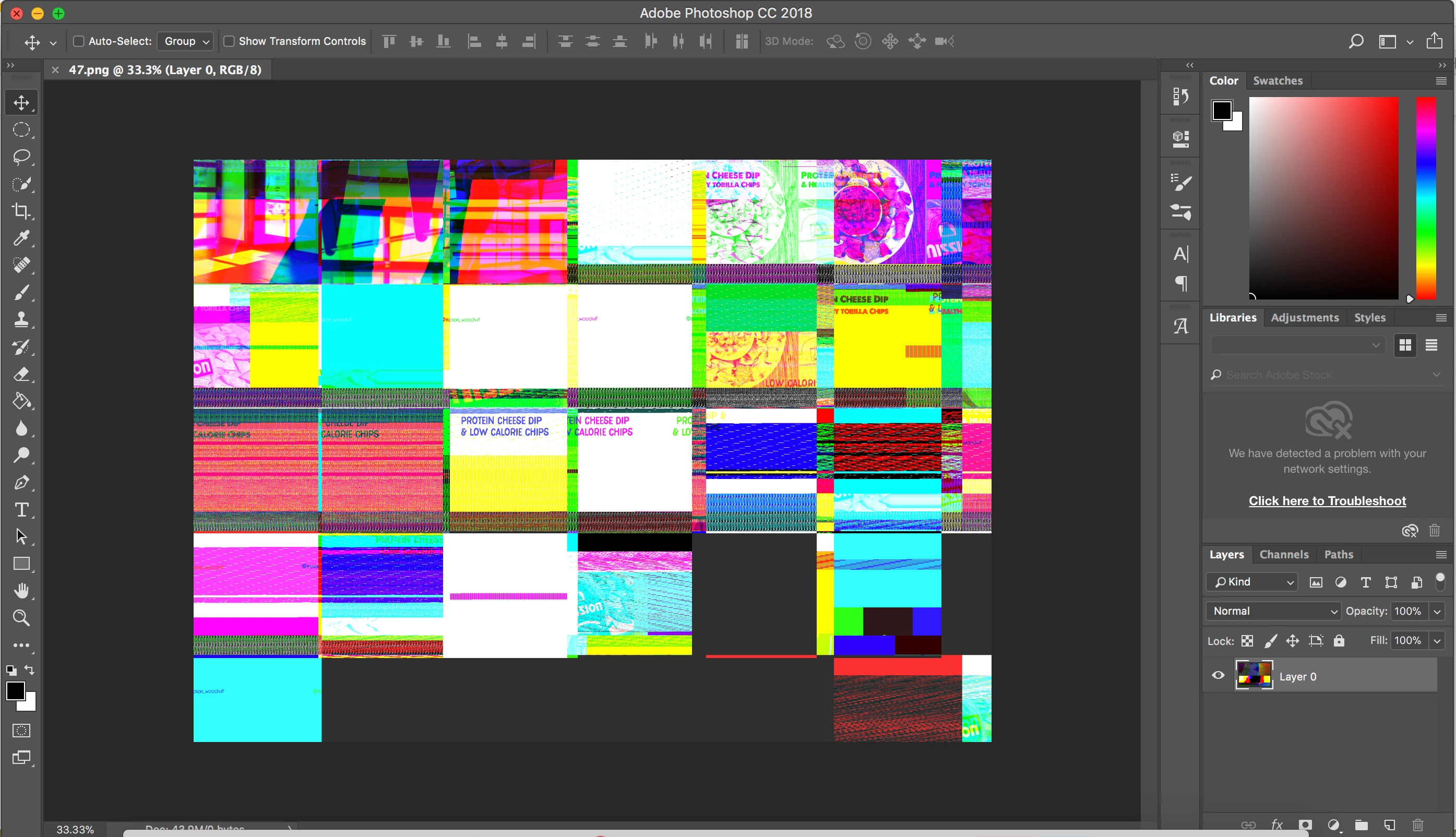 I recently upgraded to Adobe CC, and when I place a PNG file into any Photoshop file, the image is distorted (see below). I read another forum that suggested that the "Use Graphic Processor" option should be unchecked. I did that, but unfortunately, it did not resolve the problem. What is also strange is that the little pieces of photos the are visible in the image are from several different recent projects but have nothing to do with the PNG I'm trying to open. I'm using a mac. Any help with this would be greatly appreciated.