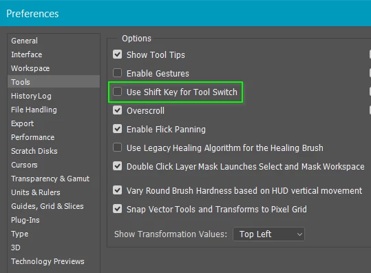 Incidentally, regarding using the Shift key to toggle between tools, some time ago, and after years of working that way because it was the default and everyone does it, I suddenly asked myself why, and could not think of a good answer?   So I turned it off and just tap the relevant key without the modifier now, and it is a whole lot faster.  Just a thought.