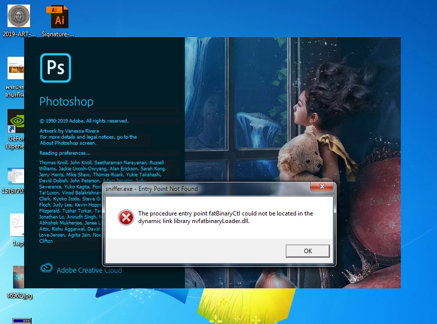 Pop-up message (sniffer.exe error) when starting photoshop