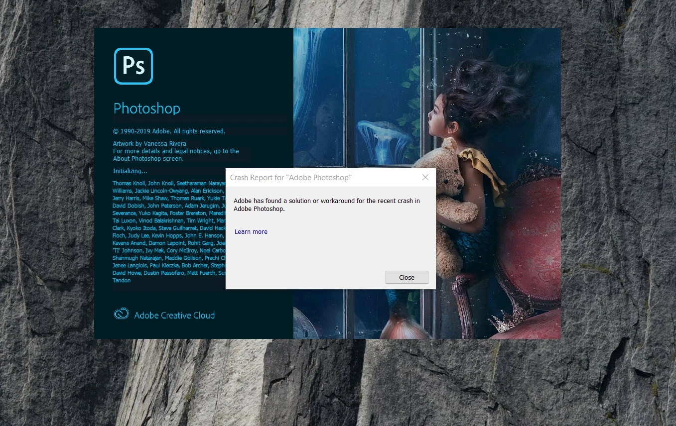 I open Photoshop, and the message appears as in the picture.