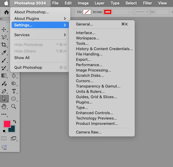 "Preferences" doesn't appear in Photoshop menu or in any other menu. How can I fix this? I want to access the opening page with all my Recent files, but I can't.