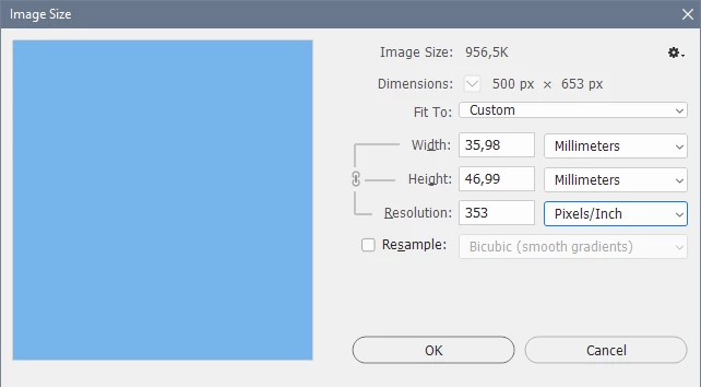 I have tried to print a 36x47mm 500x653px 353dpi photo with crop marks on a 5x7 size paper.