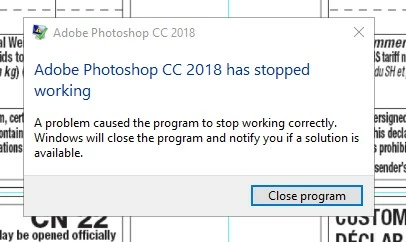 The problem I have is whenever I try to print any file created on the old computer with the old printer information, Photoshop crashes with the following message.