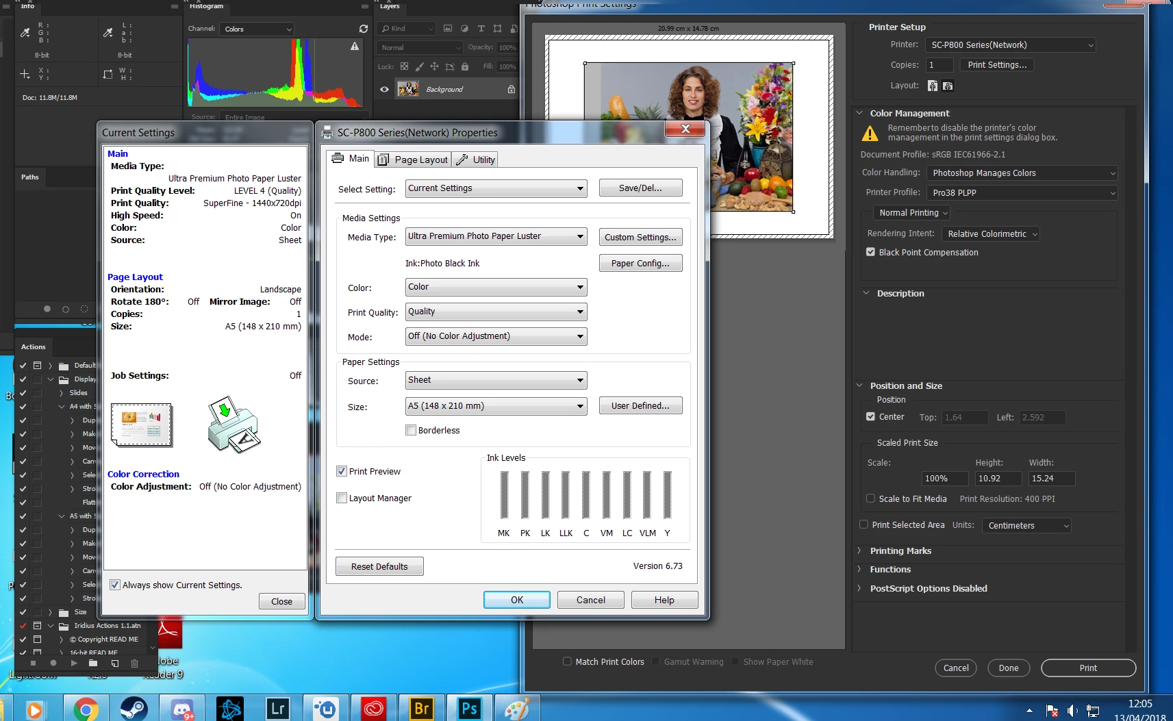 Printing to Epson SC-P800 from Photoshop CC - Colour Problems