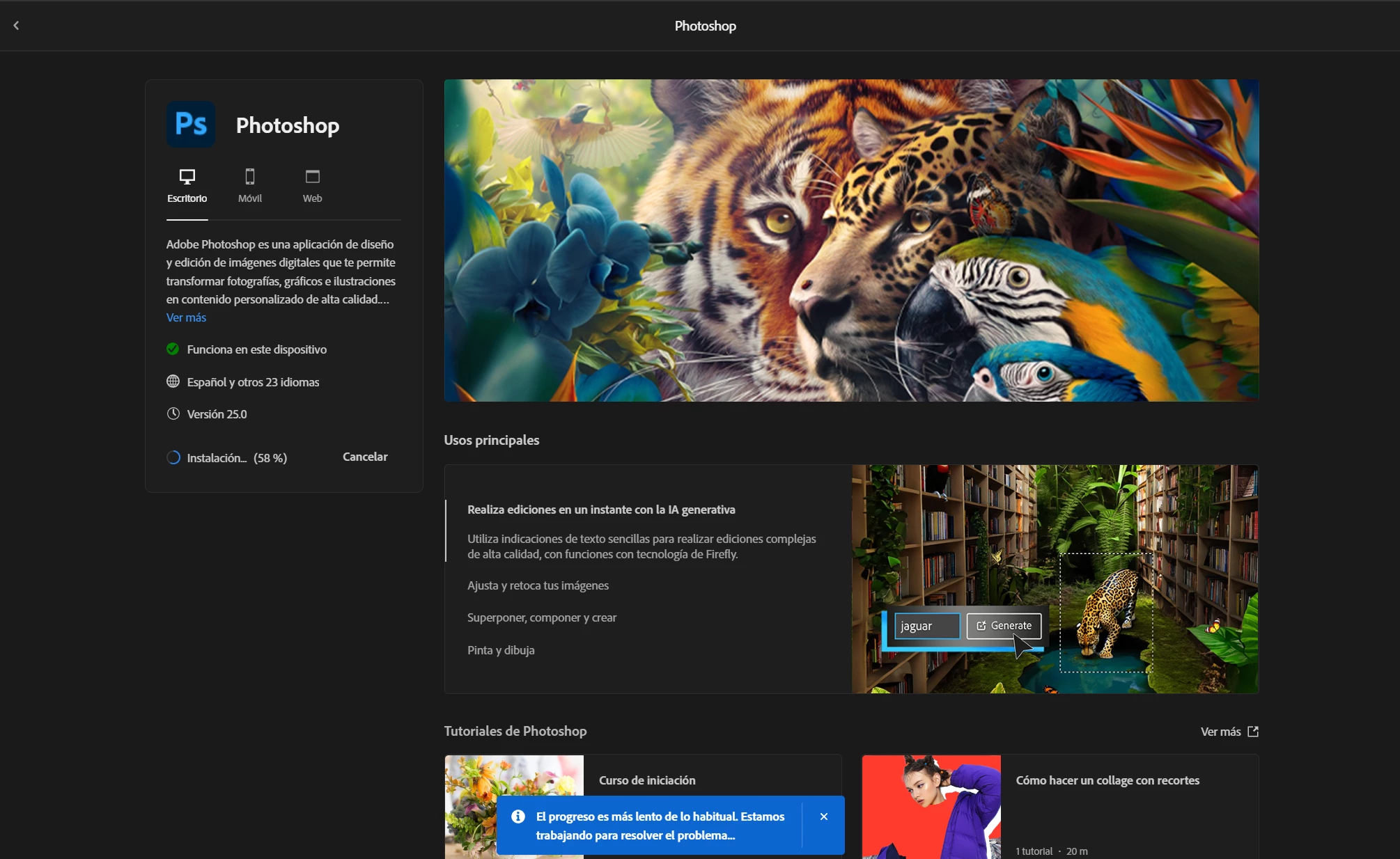 Problame de instalacion de Photoshop 2024. se detiene su instalacion