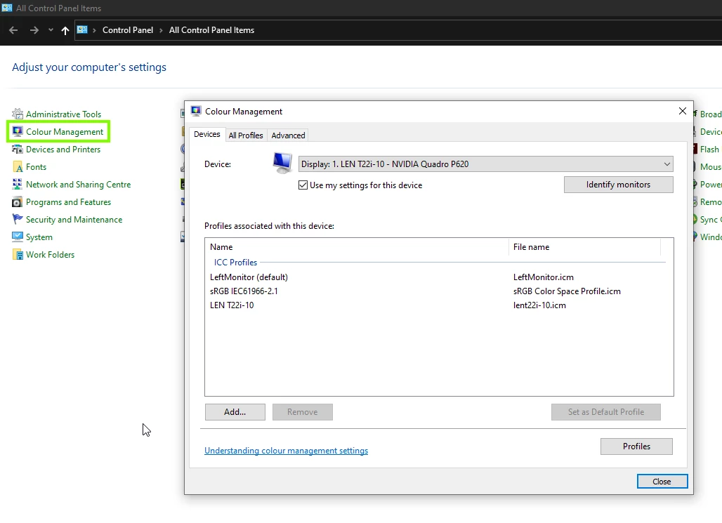 Display profile issues on Windows