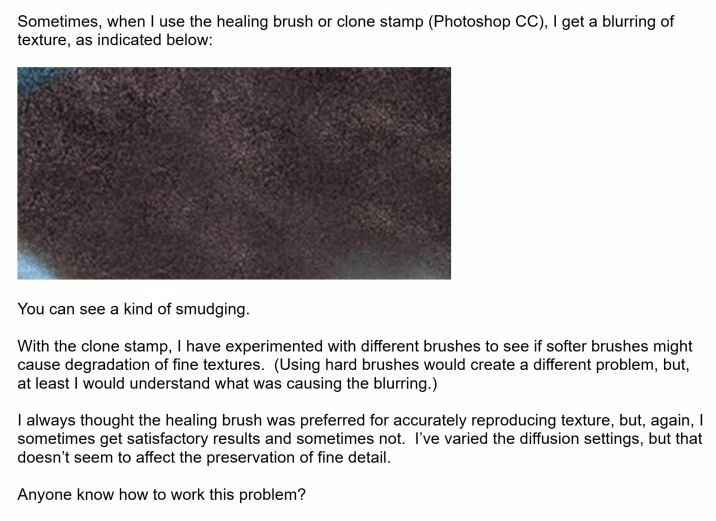 Problem maintaining texture with healing brush and clone stamp