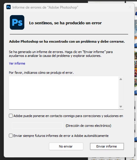 When the free space from Disk C: becomes empty, the Photoshop crashes: