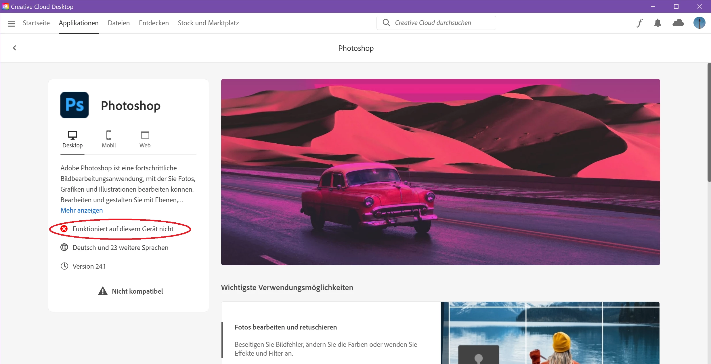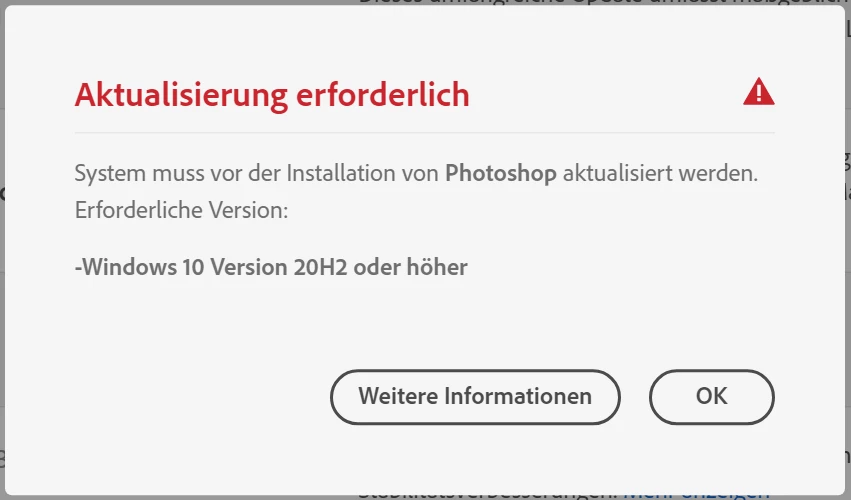 System muss vor der Installation von Photoshop aktualisiert werden