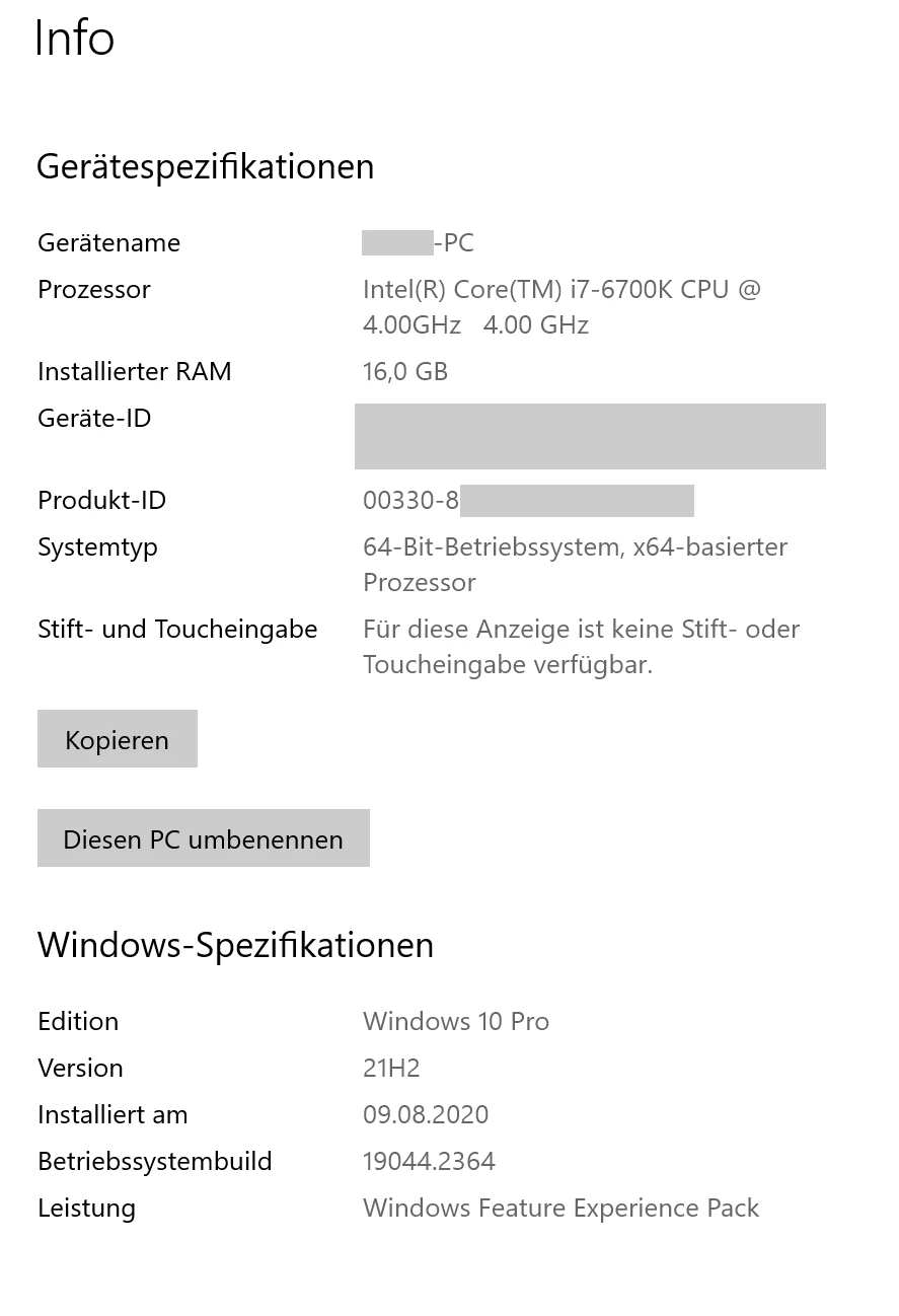 Betriebssystem ist aktuell Win 21H2 64Bit