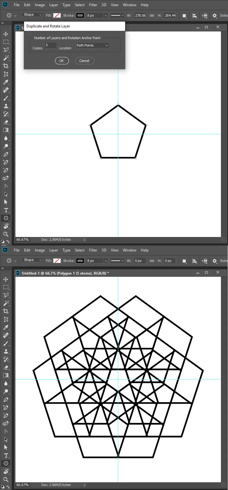 And if anyone can tell me if photoshop can lock or snap the anchor point (for rotation) to the guides, please tell me.