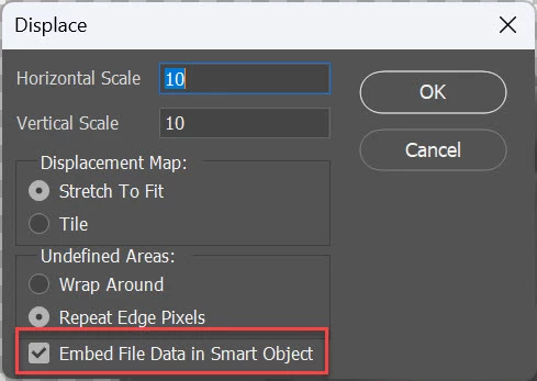 Hello everyone, I'm having problems making the displacement map effect, I do all the processes and even so, when I apply the effect, only the dialog box to convert into a smart object appears, and after that nothing happens, the map box doesn't appear of distortion and I can't even change the smart filter, can anyone help me?
