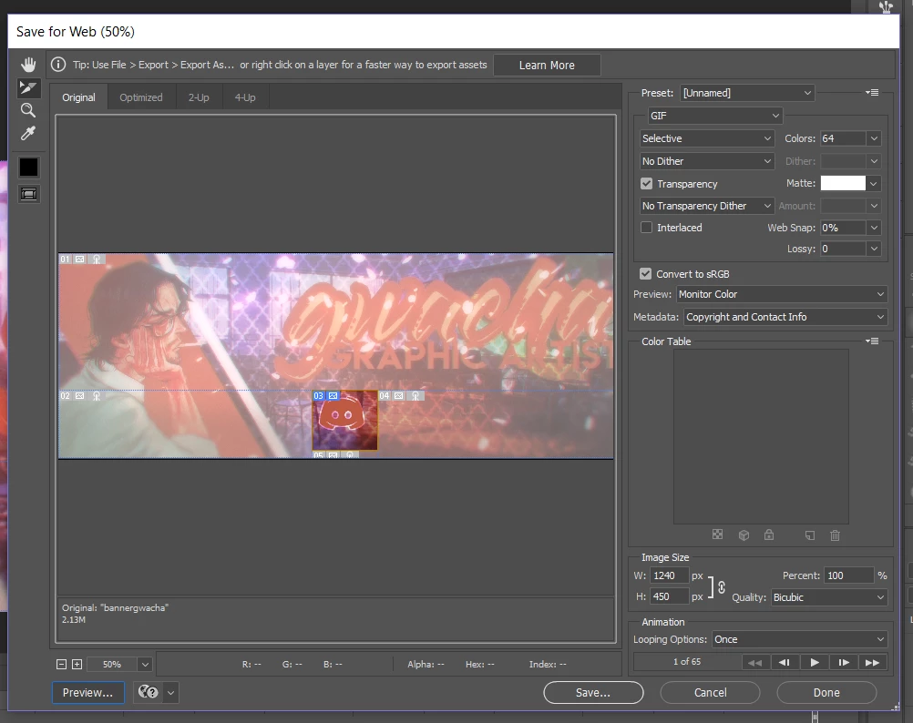 Now in Photoshop, my current "save for web" tab looks like this.