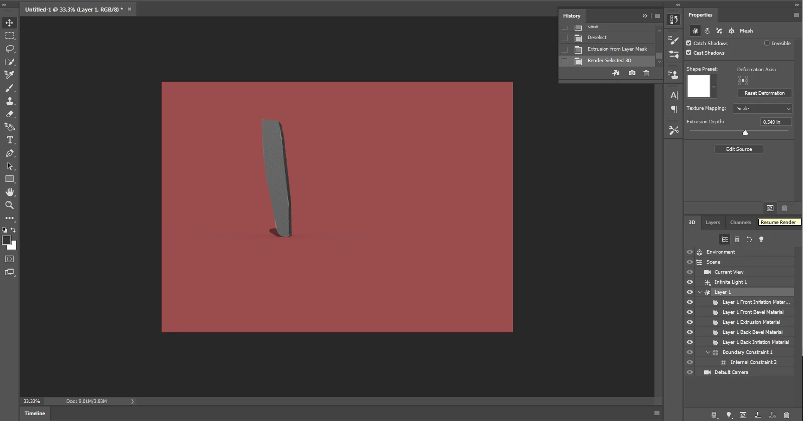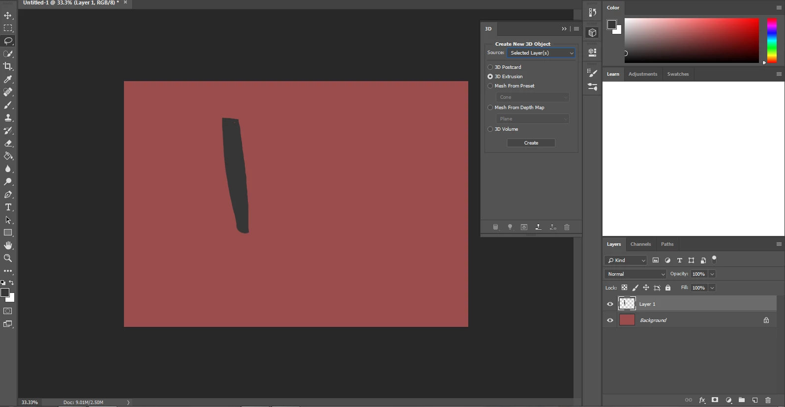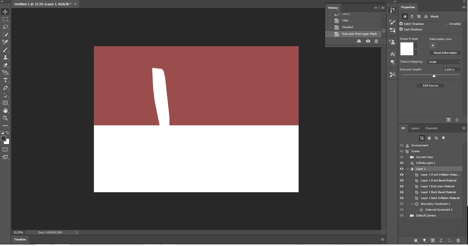 Problem with Photoshop cc 3d extrusion. Everything I do turns out white, even though I'm following the tutorial exactly