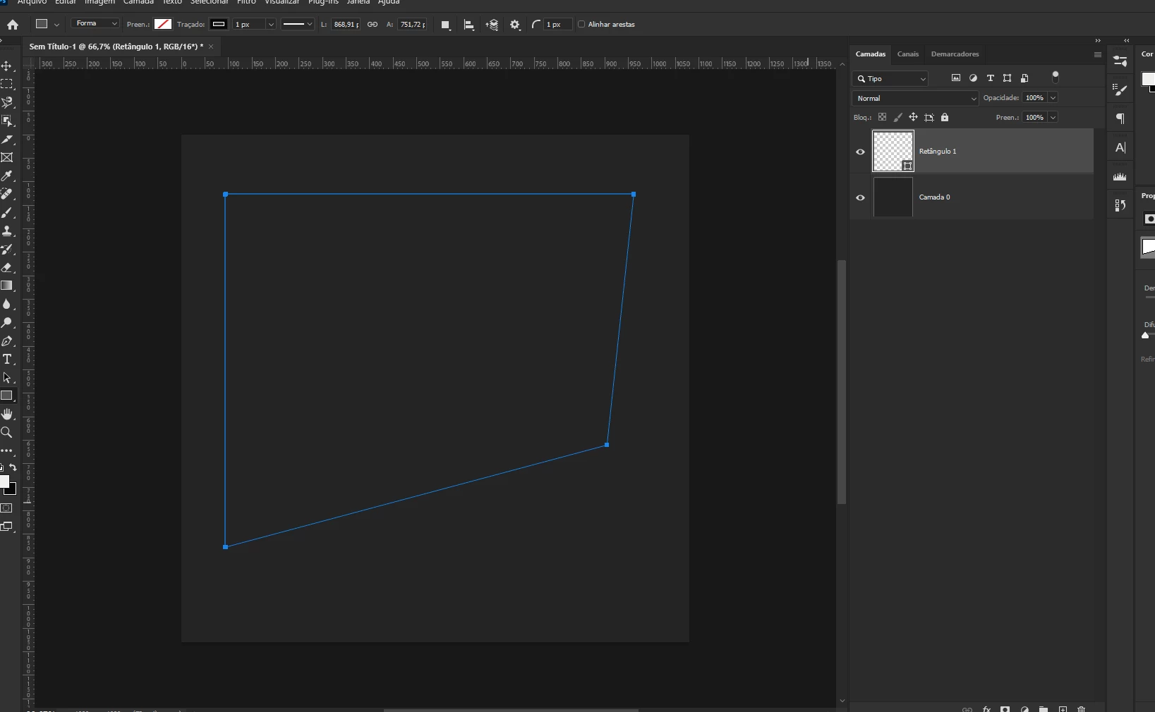 When I try to deform the shape to transform it into a perspective, Photoshop only allows me to deform a vertex of the shape, after which it locks this operation