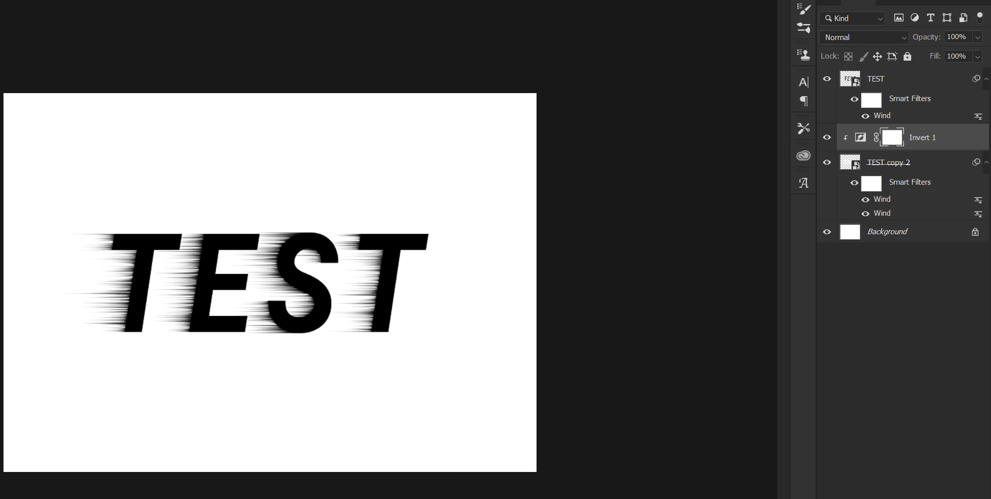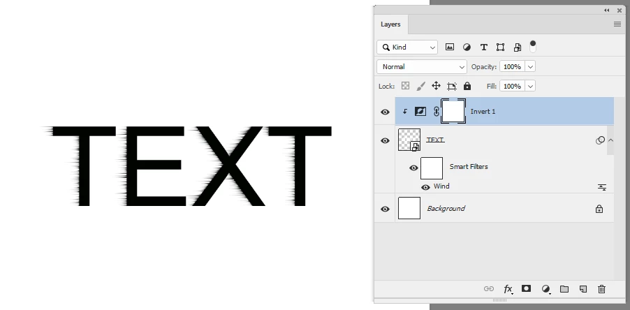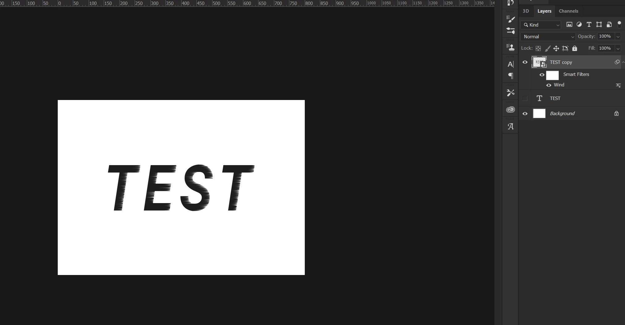 I apply wind filter to a text layer converted to smart object: