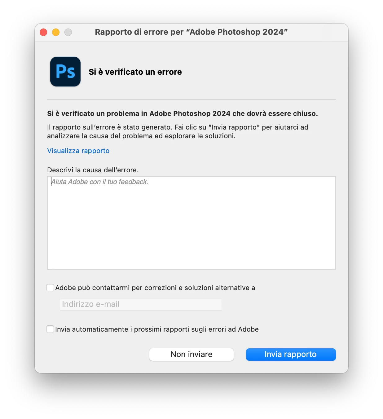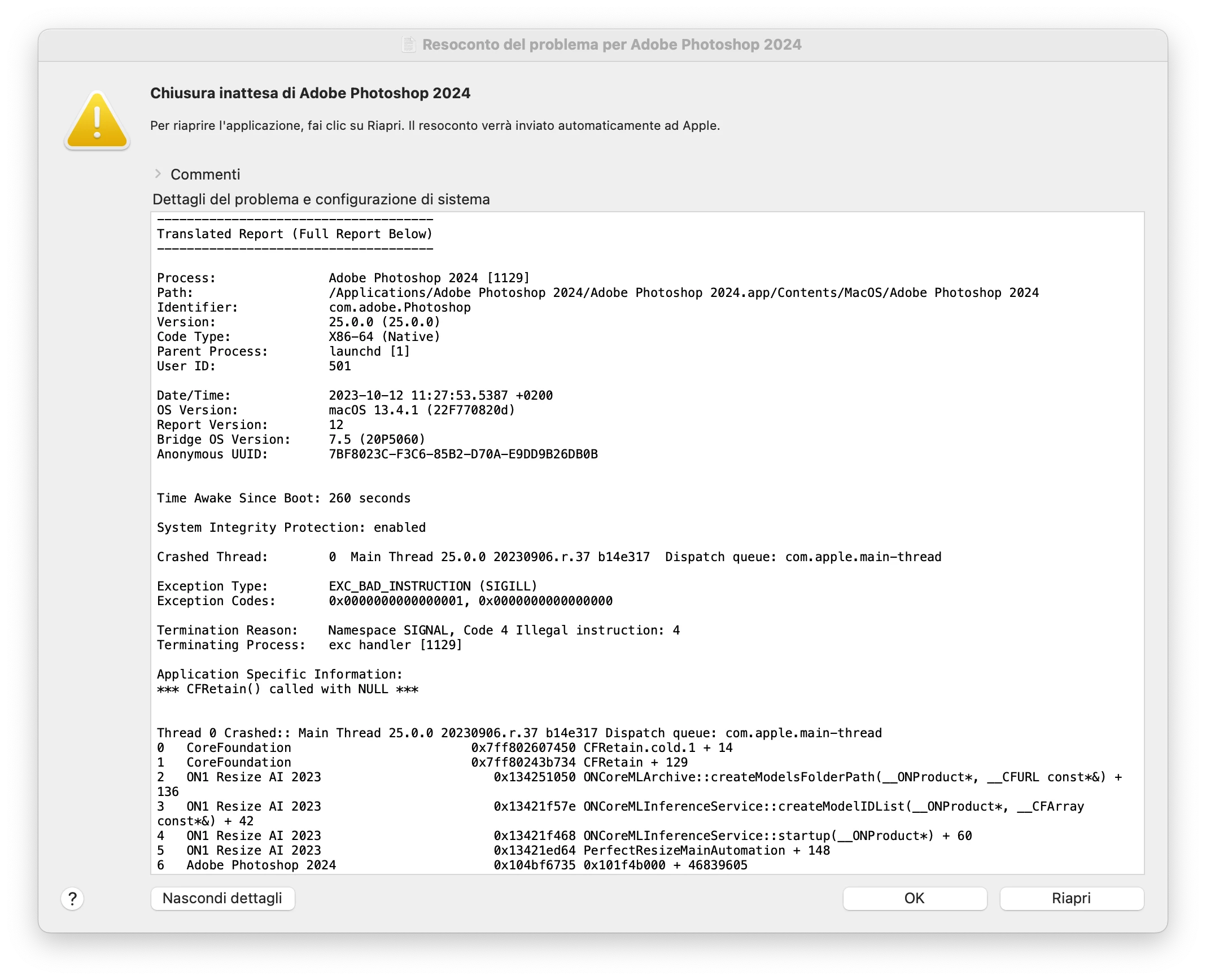 Ho un problema on Photoshop 2024, il quale dopo averlo smerpe usato senza problemi da oggi mi si chiude immediatamente dopo l'apertura, mostrandomi i due avvisi che allego al post.