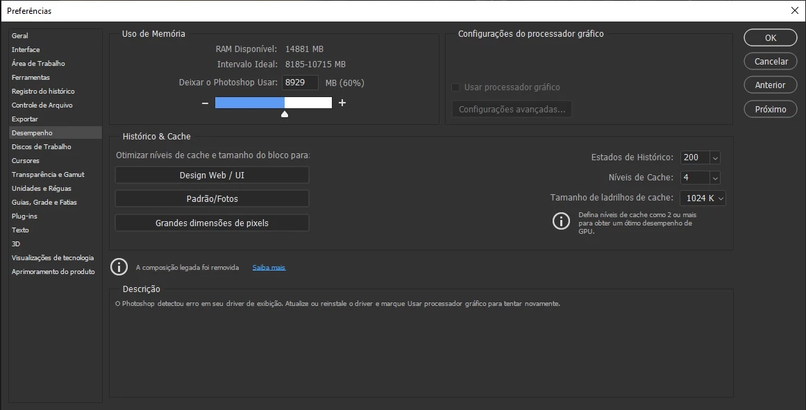 Problema com placa de video Nvidia 1050 in Photoshop 22.3 on Windows 10
