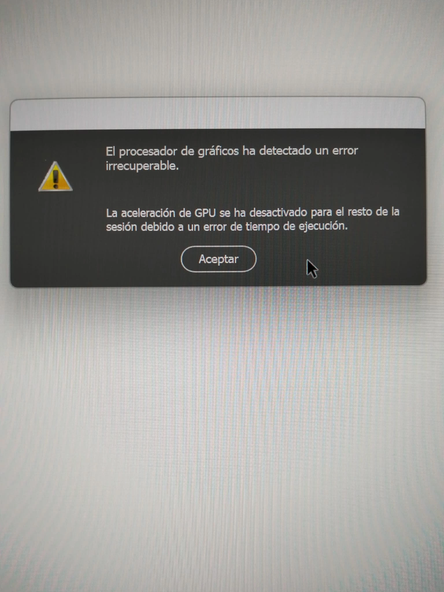 ***la aceleración de GPU se ha desactivado debido a un error de tiempo de ejecución.