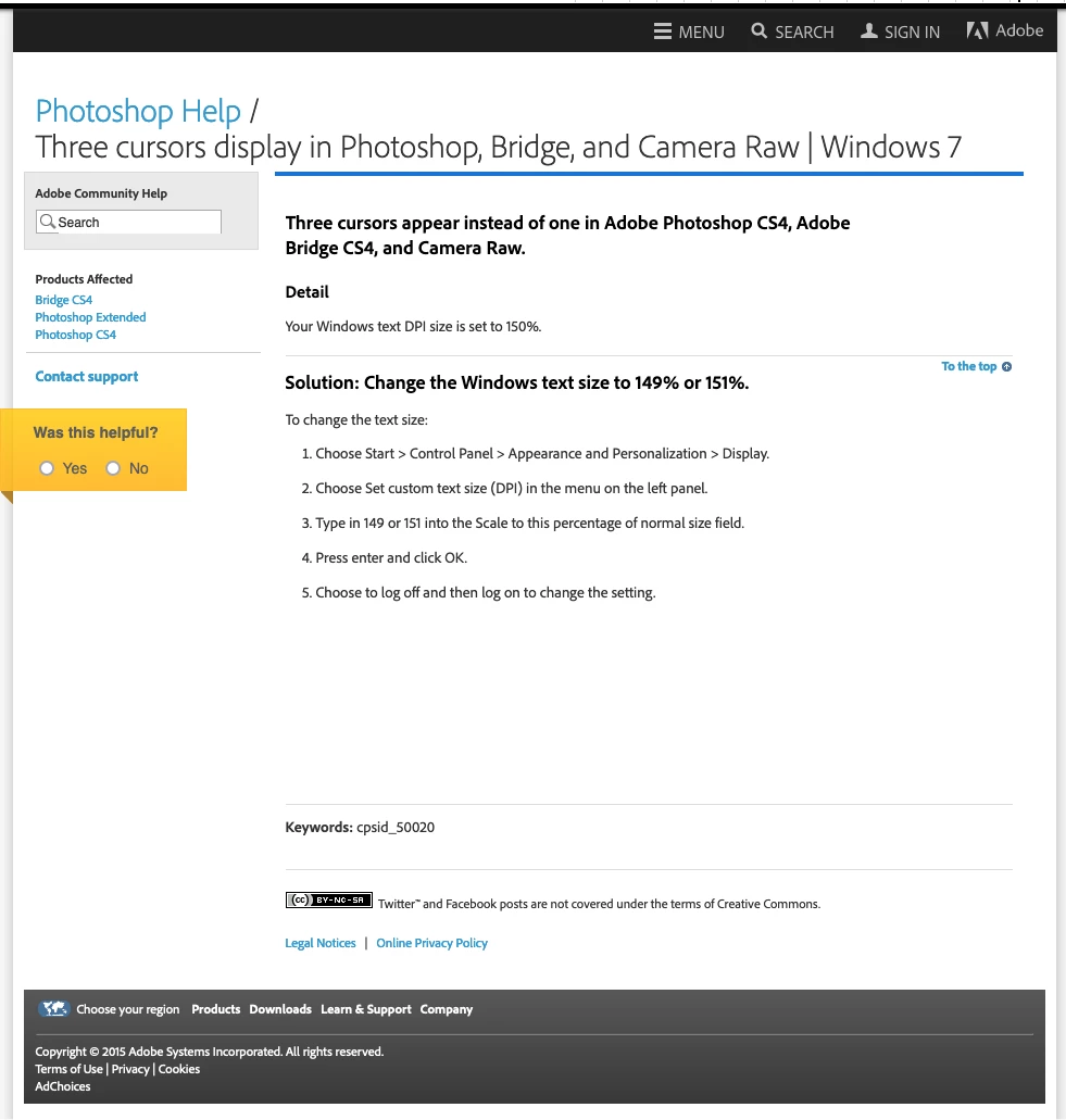 J'ai sélectionné l' "Outil Zoom (Z)" pour illustrer un exemple et bien visualiser le problème. ( ! à 100% et 200% les curseurs sont bien visibles)
