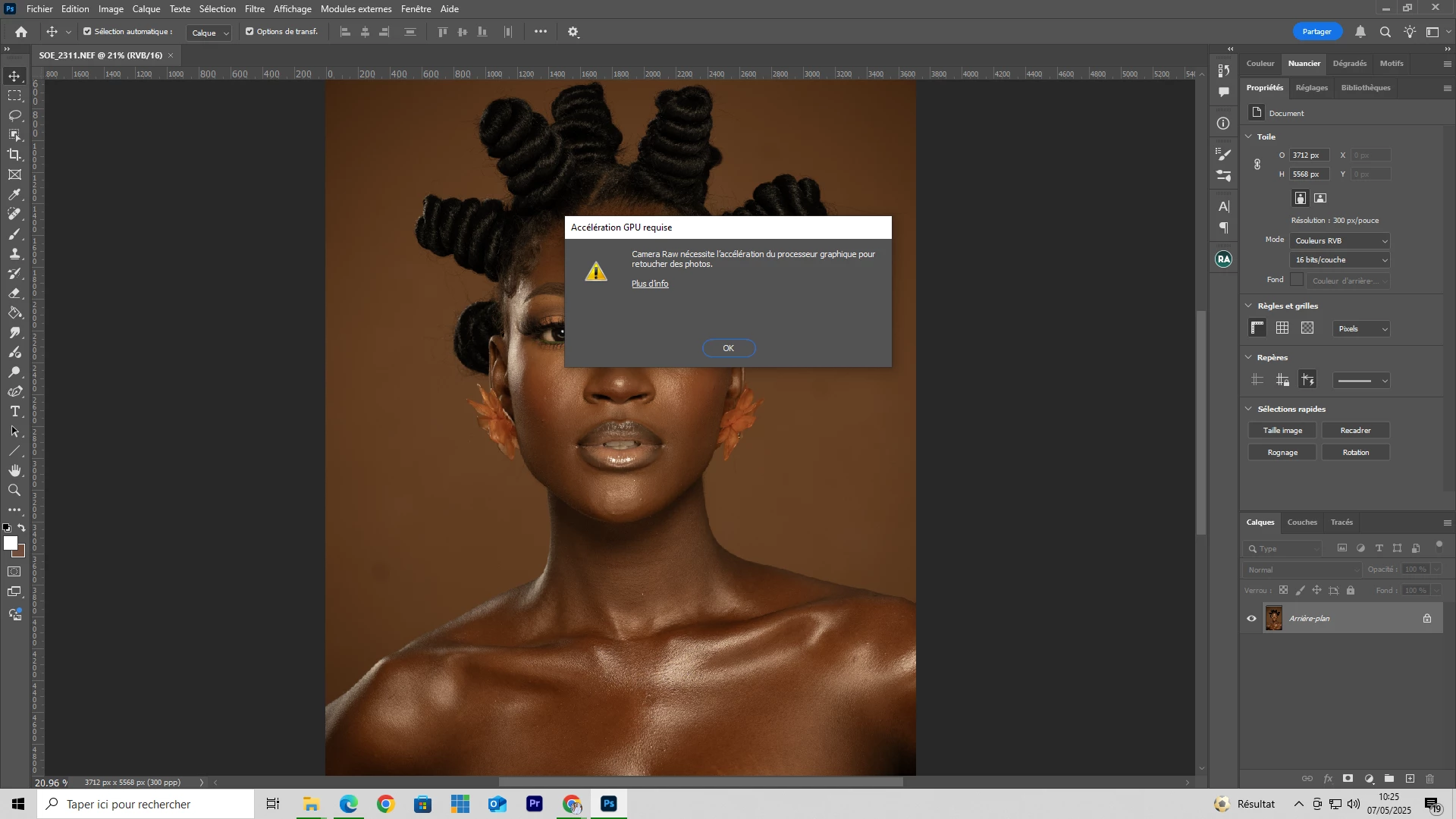 depuis la dernière MàJ de mon iMac de 2019 (et de Photoshop dans le même temps) une boite de dialogue s'affiche lors de l'ouverture de Photoshop qui m'indique un problème avec mon "processeur graphique incompatible" (GPU Unknown). Et du coup je ne peux plus accéder à certaines fonctionnalités que j'ai l'habitude d'utiliser quotidiennement, comme la déformation de perspective.
