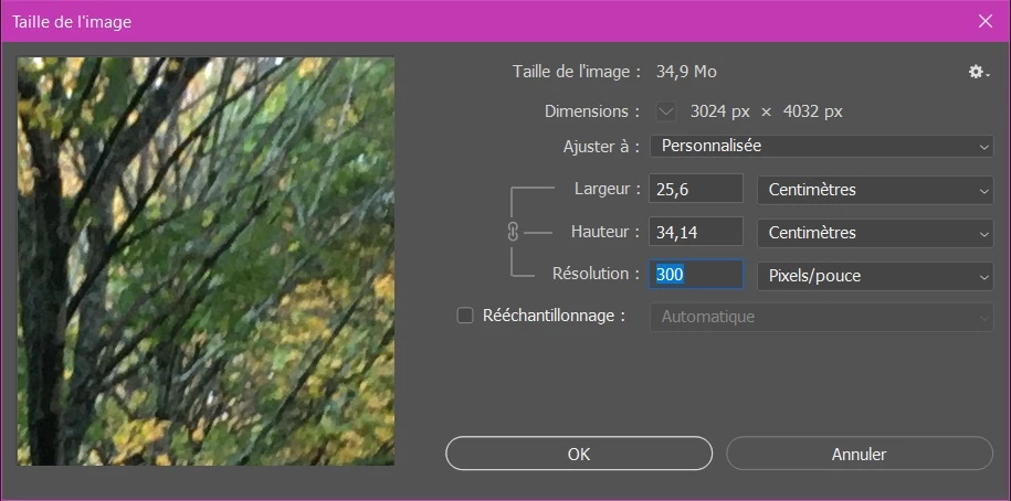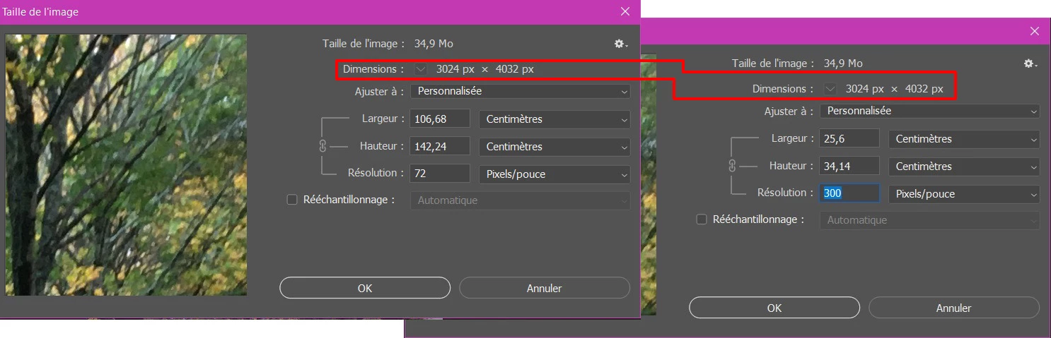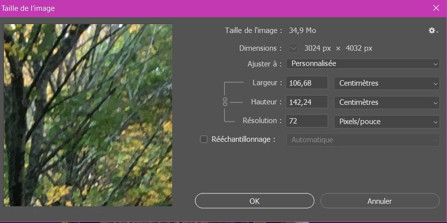 J'ai un soucis sur Photoshop lorsque je souhaite modifier la résolution d'une image via le menu "taille de l'image".