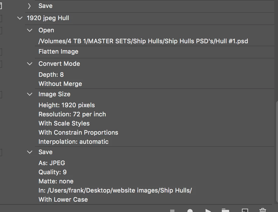 Why did you not post your action so we can see its steps and the setting recorded for each action step.  How would we know what your action does.