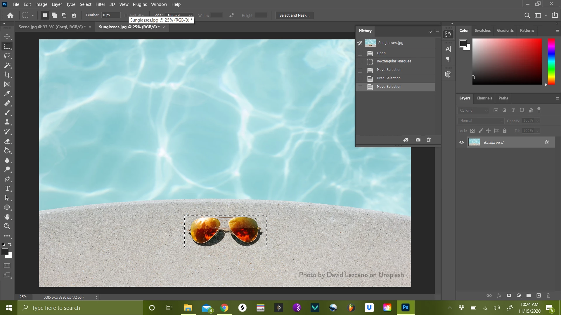 I am having trouble inserting an object into another window in photoshop. I thought normally you could just click and drag the selected image into another window and it would copy the image. However, when i do this, only the rectangular marquee selection is transfered without the image. what am i doing wrong???