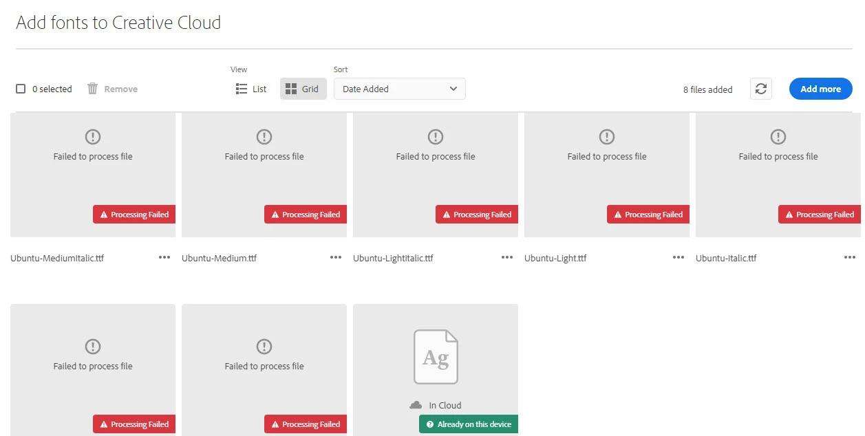 Since yesterday I'm having trouble with the Ubuntu font family - Creative Cloud App first showed some sort of font conflicts and then failed to process the font styles during re-upload.