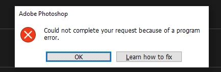 When I try to click the "x" at the top right of photoshop, I get the same error.