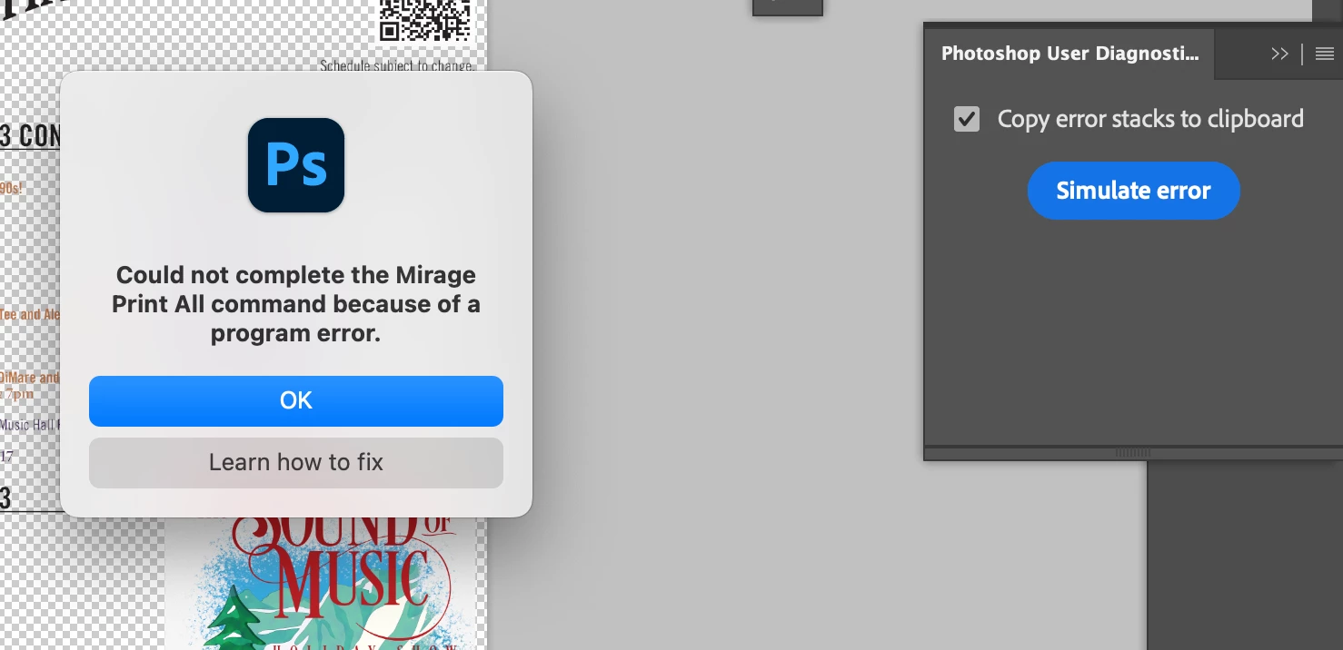 Message: Could not complete the Mirage Print All command because of a program error.