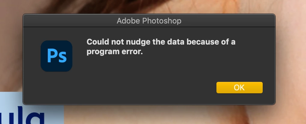 I'm having the "Could not nudge data because of a program error" message occasionaly when I try to move one or more layers with the arrow keys (Marquee tool selected, Cmd+Shift+arrow). The only way to 'solve' it is to save the file and then reopen it (no need to restart Photoshop).