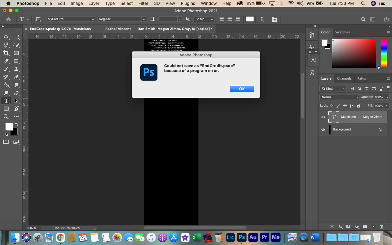 Since today's update, can´t even save a jpg file. Always says: Could not complete your request because of a program error. I'm very confused.