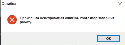 произошла неисправимая ошибка photoshop завершит работу