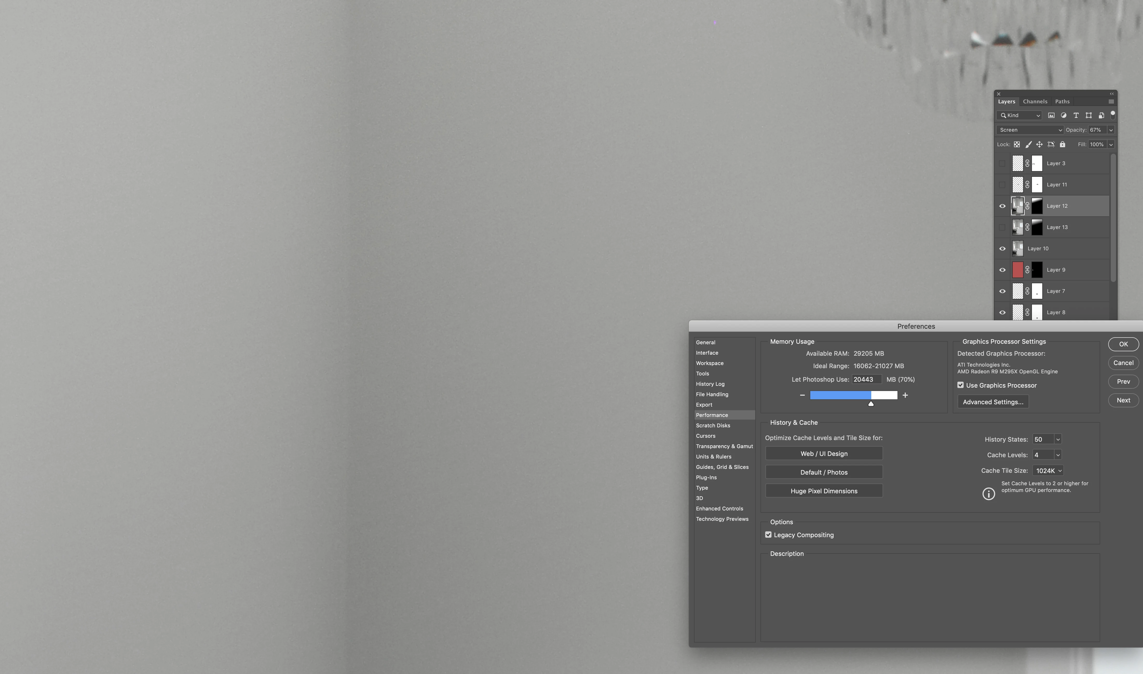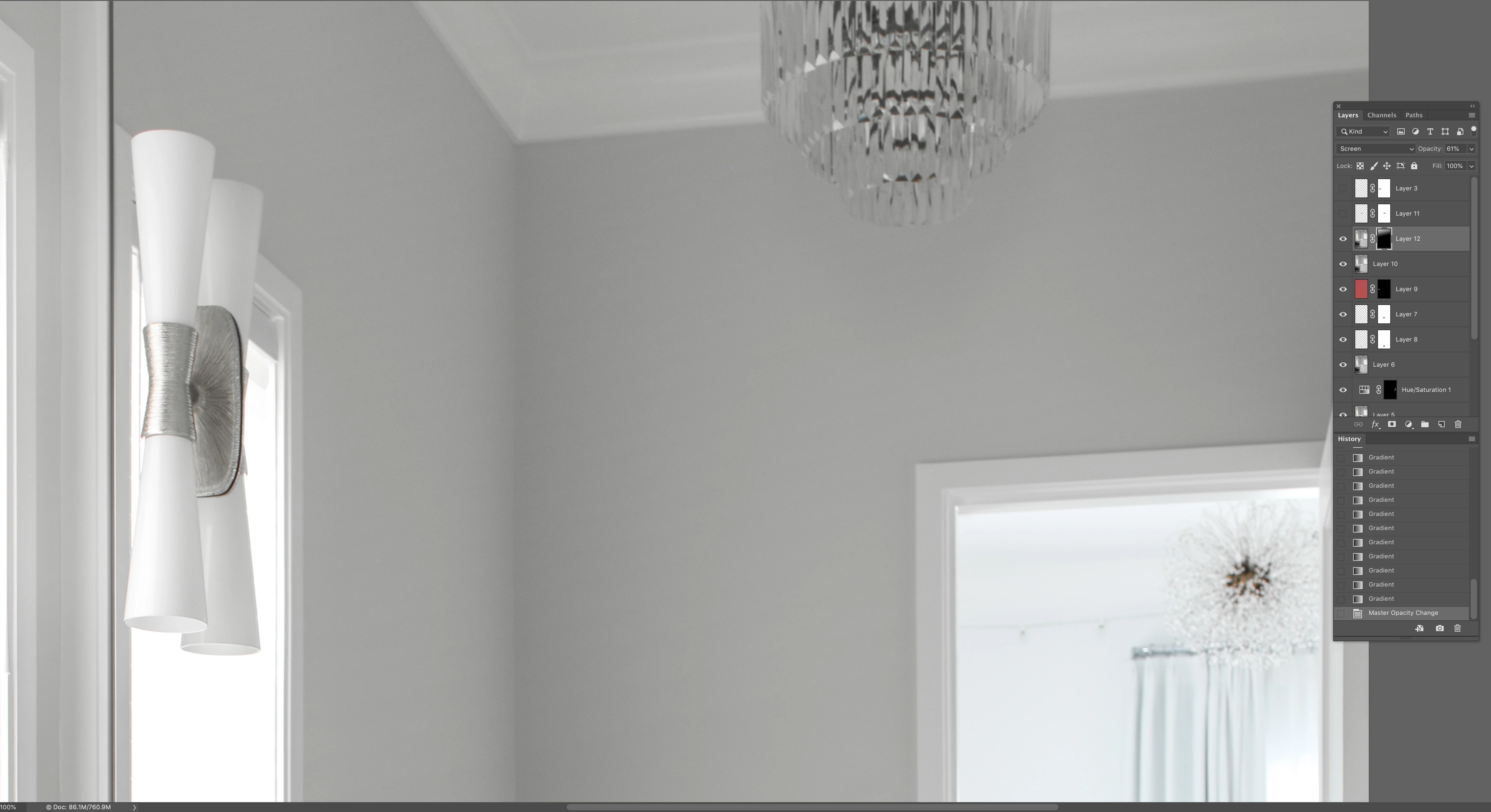 Hello, I am just noticing a pretty bad issue when working on photos in PS after the latest update. First the brushes seem laggy at times and cursors disappear while using for a few seconds and the program seems to "Think" then re-appear. But more importantly I am experiencing pretty sever banding when dragging out gradients. be them linear or radial, regardless of screen zoom level. For example, if I duplicate an image layer, change the blend mode to screen, or multiply to either help darken or lighten an area or portion of the image, and add a layer mask and use a gradient on the mask, that is when I will get a terrible and noticeably visible banding through the transition. I was curious if anyone else is experiencing this or if there is a setting I need to address. I am working on a 5k Imac late 2014 that is running Mojave 10.14.1 with a 4GHz i7 with 32GB memory and an AMD Raedon R9 M295x graphics card. Prior versions of PS were not exhibiting this behavior. The banding remains, but will change its spread when feathering in properties is altered, or the opacity of the layer is changed as well. It will also get locked into the file when flattened and resized or saved and remains visible. I have attached a screen shot which hopefully can show this well. Thank you in advance for any help or insight anyone may be able to offer.