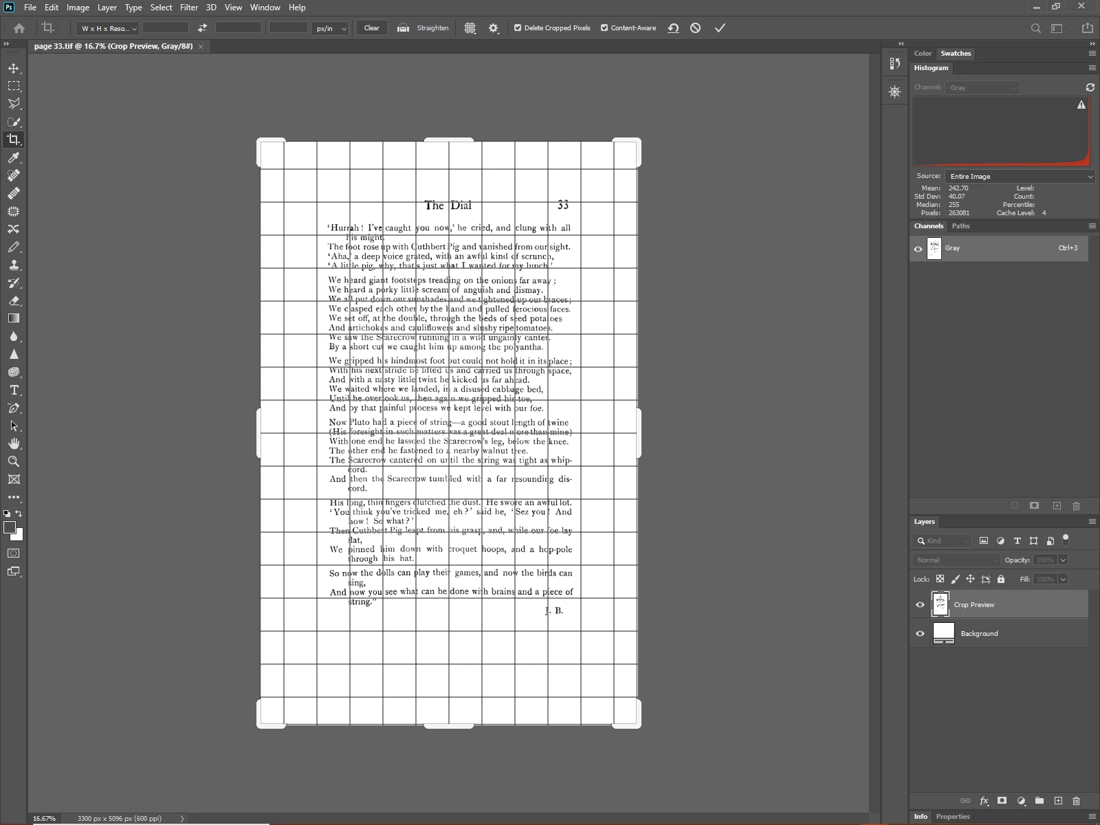 When the same instance of Photoshop on the same Windows 10 PC is viewed from a Remote Desktop session from a Windows 7 PC also with a 1600x1200 display, the Crop Tool overlay grid spacing is wrong (too many grid lines too close together): see attached screen-shot: "Crop tool grid - bad.png".